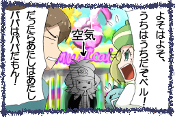 ●自分のポケモンをムーンプリズムパワーして楽しんだ後、早速ベルとホクホクしながら外に出ると、ベルのお父さんの姿が!