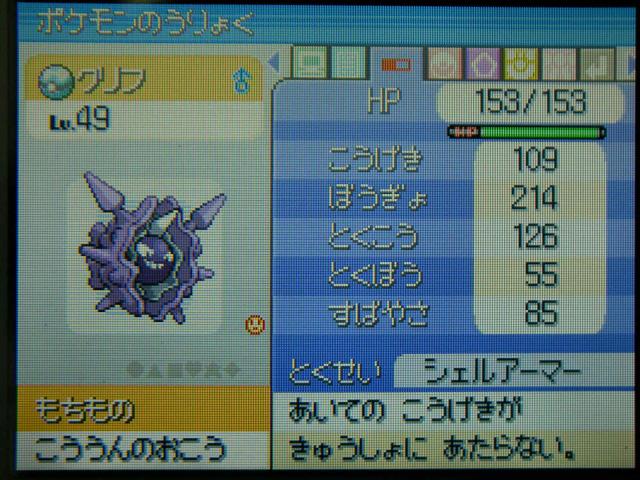 ちまちま育ててたシェルダーが冷凍ビームを覚えたので進化させました。