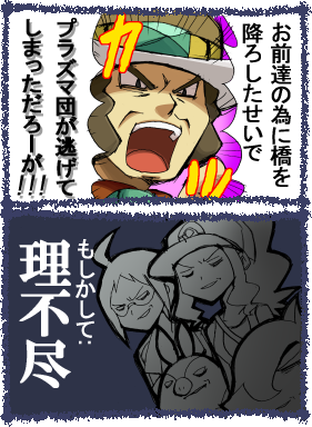 つまり、はねばしを降ろしたせいで、町で捕獲していたプラズマ団がどこかへ逃げてしまったのこと