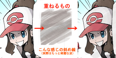 杉森先生は人物ポケモン問わず、イラストを描く際に斜め模様のテクスチャ(?)をかけてます