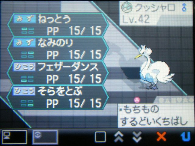 他にボディパージなどもあるが、フウロ戦で使ったところ、ケンホロウには先制できたものの、切り札スワンナの方が速くて撃沈した。進化待ちか。