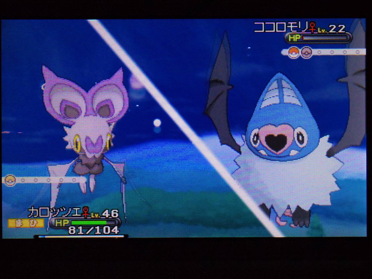 つまり、オンバットを野生で厳選する場合、苦労して洞窟の影さえ出現させられれば(僕の場合は出現までに5分経過・・・)、後は文字通りのリセマラで粘る事が可能。