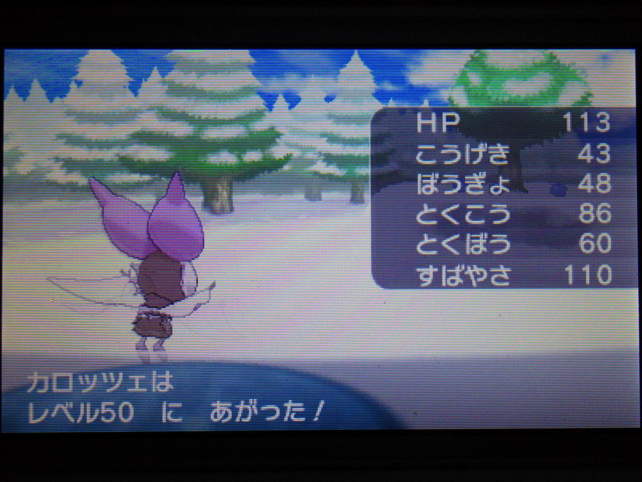 長かった・・・野生厳選としては十分すぎるほど高いのを引けた(オール20オーバー)ので、もう満足。めざパは水、まぁ最低限とは言える。サイキネで代用できるエスパーとか、フェアリーの下位互換に近いドラゴンとか引いてたけど、それはクレッフィには意味が無いし。